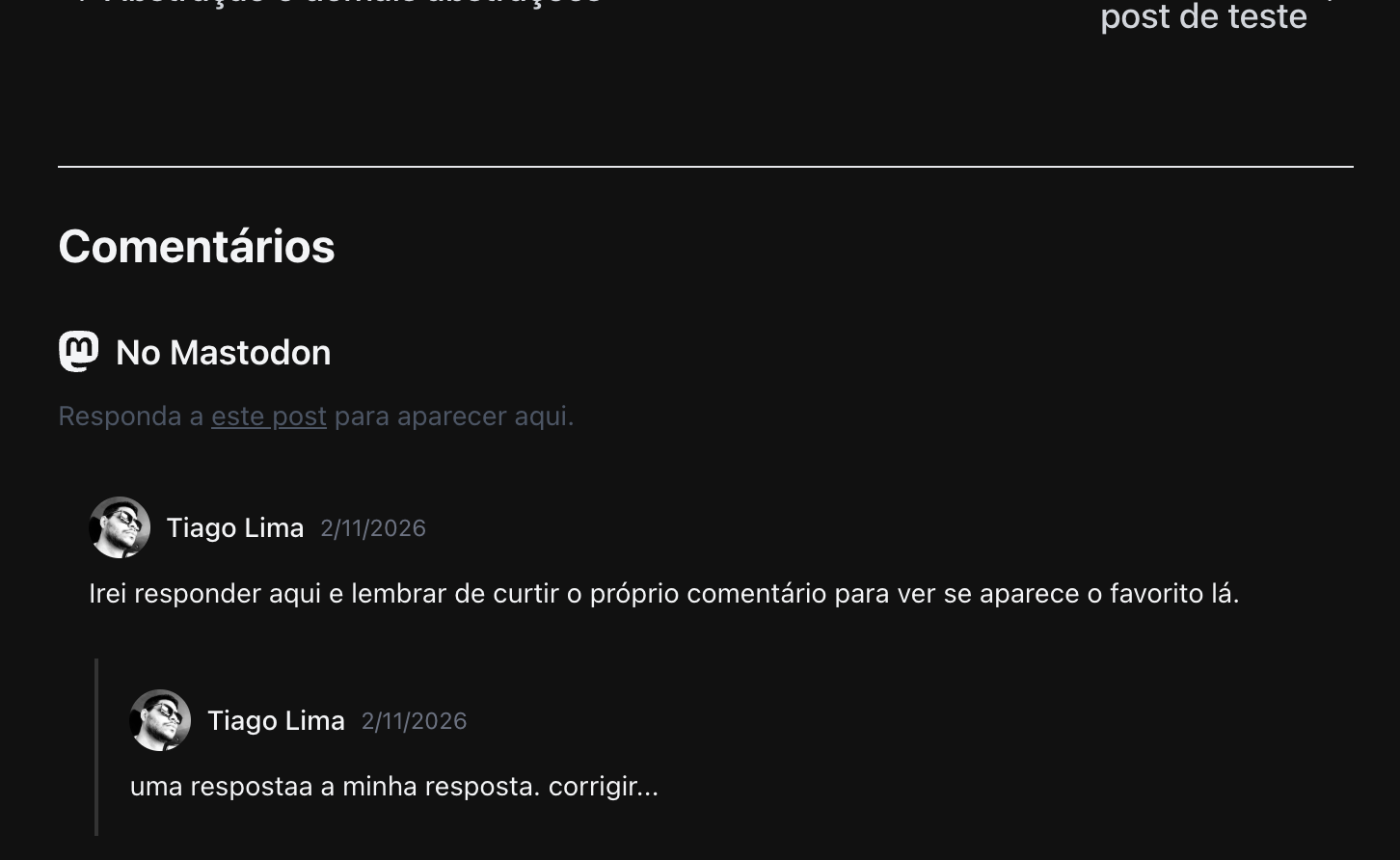 Como mencionado no início deste post, o processo para habilitar comentários nas publicações exigiu um tempo considerável de experimentação e certo domínio técnico, além de algum tipo de ajudinha de ferramentas de IA.