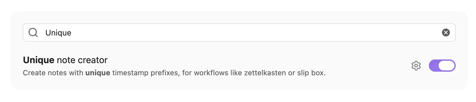 Com as notas antigas, nada posso fazer. No entanto, para não arriscar perder algumas informações das notas que venho criando atualmente, estou tomando o cuidado de, ao criar uma nota, usar a data e hora como “título da nota”1. Como uso o Obsidian para escrever minhas anotações, tem um plugin nativo que facilita muito a minha vida. O Unique Note Creator é um plugin perfeito na sua simplicidade — me lembrou a filosofia UNIX, sobre a qual pretendo escrever um post futuramente —, ele apenas cria uma nota com um identificador único que pode ser configurado pelo usuário e por padrão vem no formato YYYYMMDDHHmm, que simplesmente significa ANO-MÊS-DIA-HORA-MINUTO.